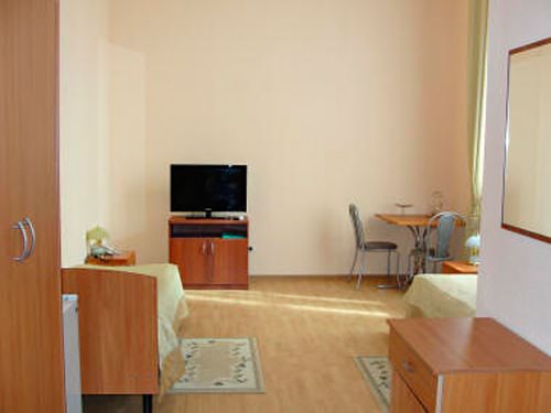 В помещениях гармоничный интерьер нейтральных цветов. Установлены две односпальные кровати, стол со стульями, телевизор и кондиционер.